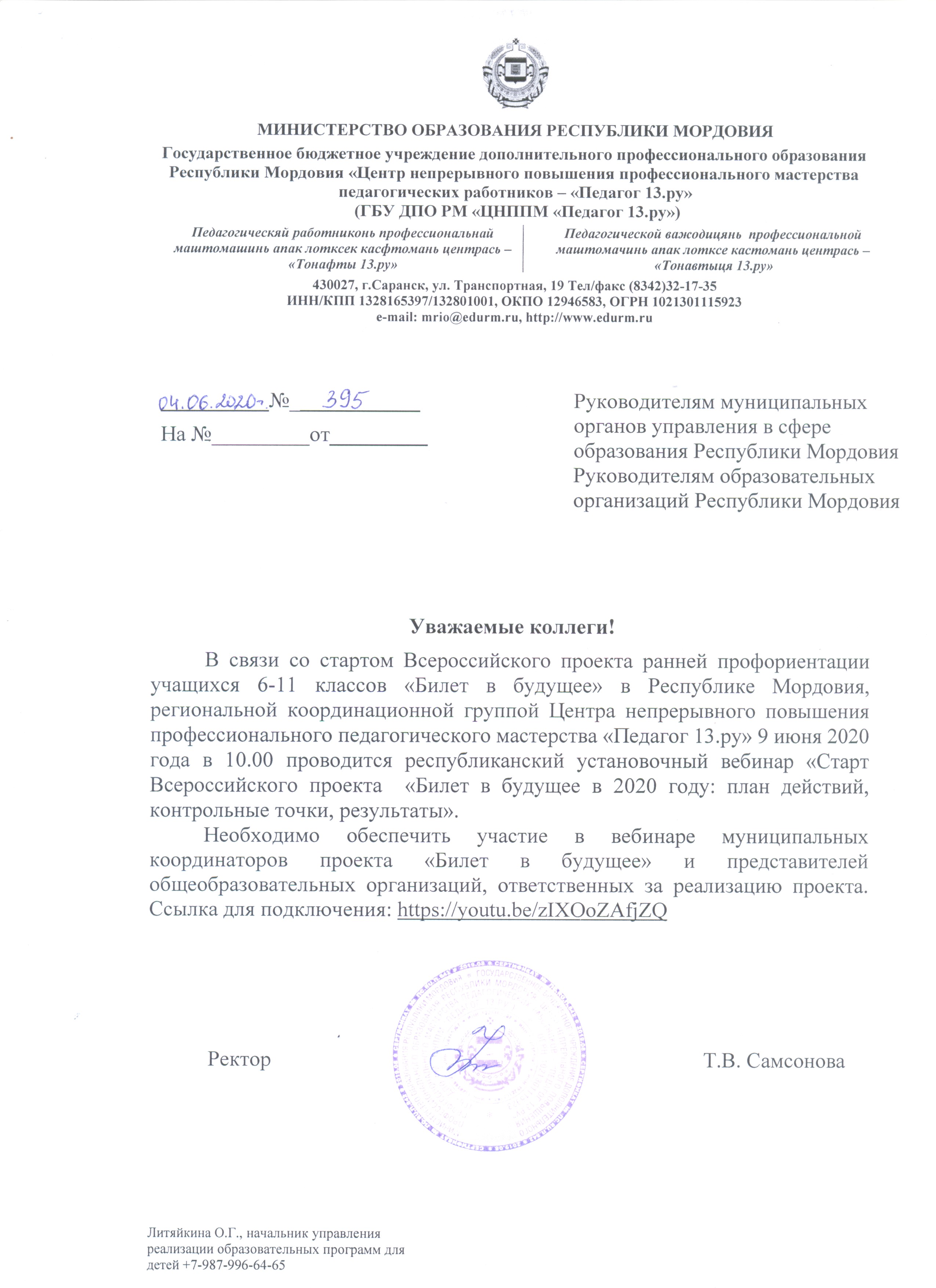 Приказ МО РМ №1211 от 24.10.2019 "Об участии в реализации проекта "Билет в будущее"